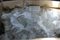 Cartone contenente numerosi bicchieri in vetro con bordo dorato e oggetti diversi (difetti)