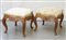 Coppia di panchetti in legno intagliato con fascia e gambe mosse e sedute in tessuto operato (cm 53x49x53) (difetti)