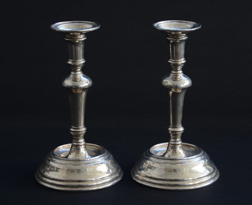 Coppia di candelieri in argento in stile Veneziano. Italia, secolo XX