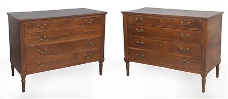 Coppia di comò a quattro cassetti con piedi torniti, inizio secolo XX (cm...
