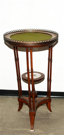 Gueridon tripode con piano superiore decorato a ringhierina, sottopiano...