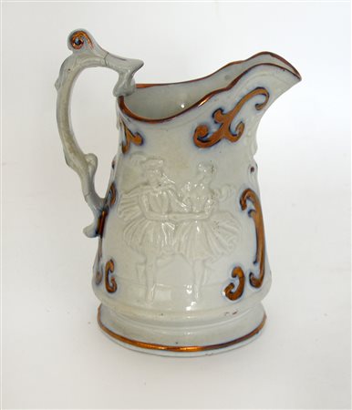 Versatoio in ceramica decorato con scene galanti e volute dorate (h cm 21) (difetti e restauri)