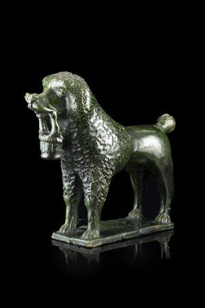 Manifattura di Pavia, fine secolo XVIII - inizi secolo XIX. Barboncino in terracotta smaltata verde (h. cm 18) (difetti)