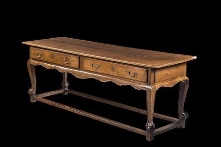 An early 19th-century walnut table (cm 230x80x71) (restorations)
