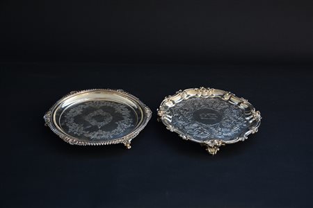 Lotto composto da due salver in argento. Londra, 1845, argentiere Charles Reily & George Stores e Città di Sheffield, 1895,