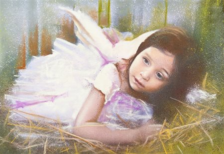 Leo (Leonardo Montemanni) L'angelo, 2008 Spray e olio su tela, cm. 70x100 Sul verso: firma e data. Autentica dell'Artista su foto Foto ritraente l'Artista con l'Opera.