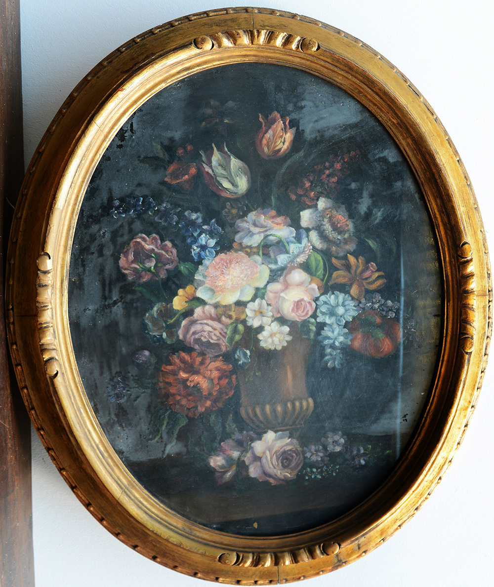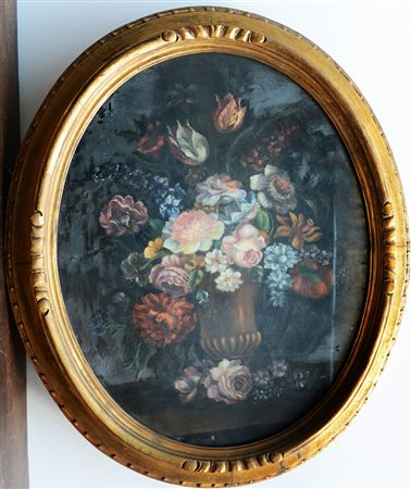 Ignoto "Vaso fiorito" olio su tela ovale (cm 70x54) In cornice (difetti)