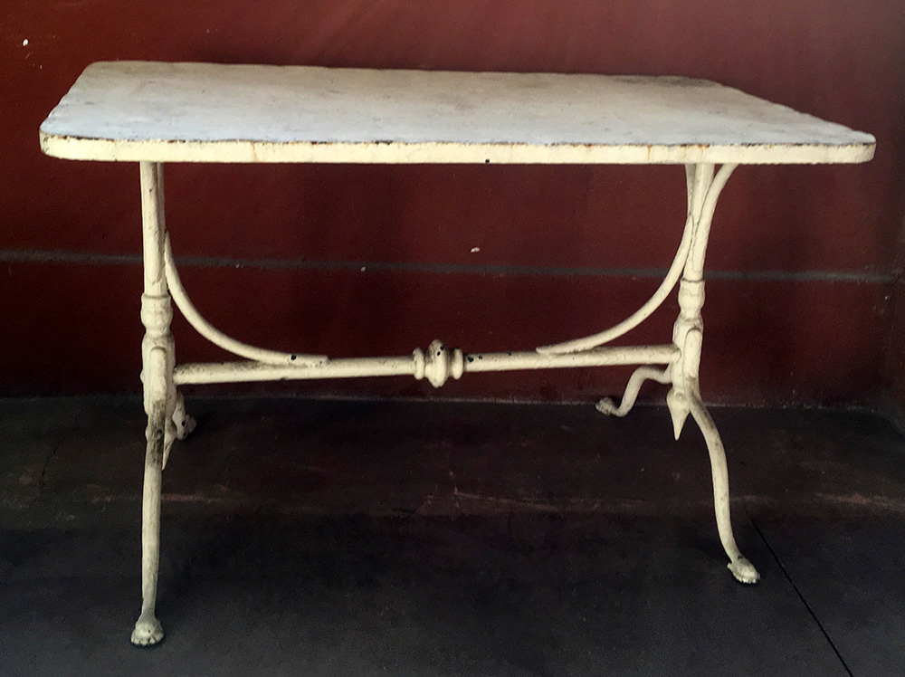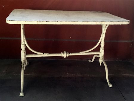 Tavolo rettangolare da esterno in ferro laccato bianco con piano ad angoli smussati (cm 120x75x70) (difetti)