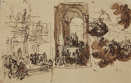 Artista del secolo XIXStudiPenna, inchiostro bruno e acquerello su carta mm...