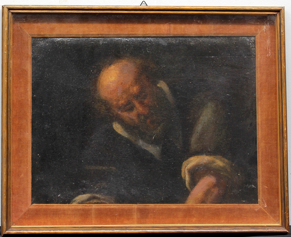 Scula del secolo XVII "Ritratto di uomo" frammento ad olio su tela (cm 30x40)In cornice (difetti e restauri)
