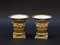 Coppia di vasetti in porcellana dorata retti da piedi ferini con fascia...
