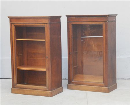 Coppia di teche con anta in vetro celante vani. Secolo XIX (cm 69x111x36)...