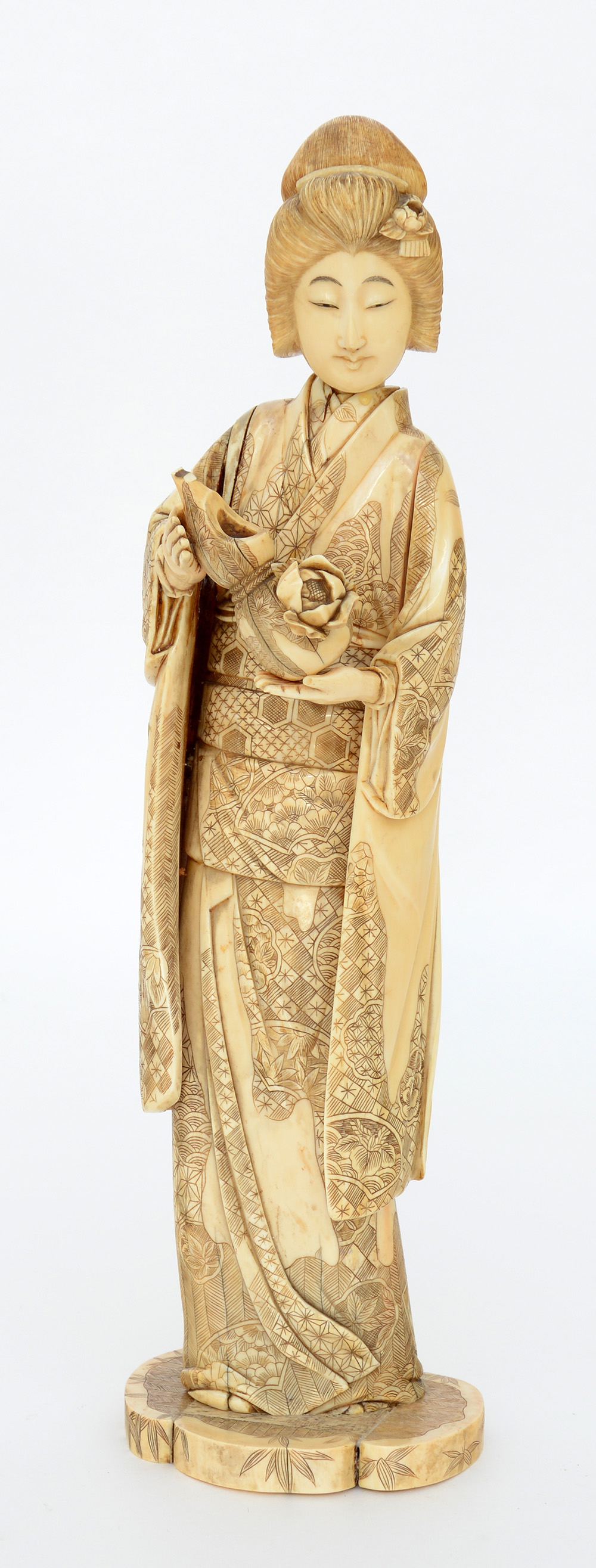 Geisha con zucca in avorio (difetti e resaturi)Giappone, inizio sec. XX (h....