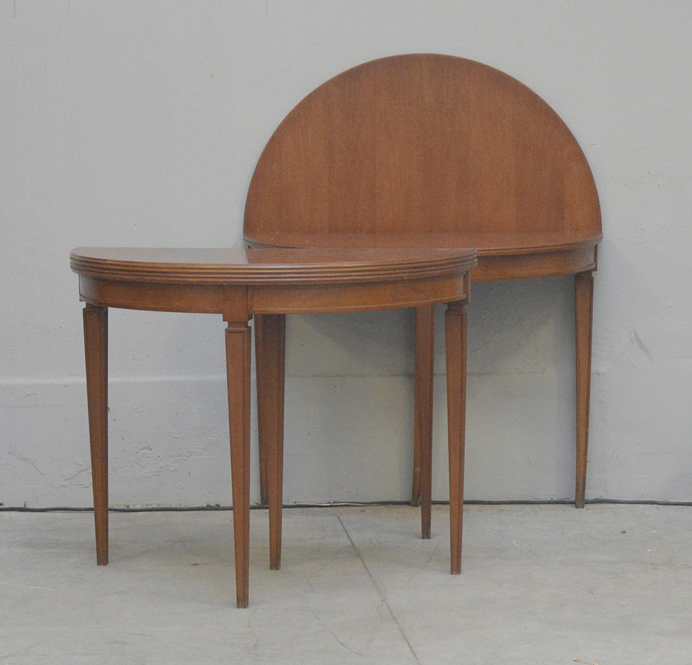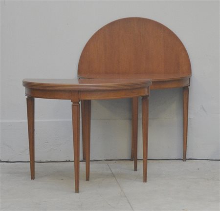 Coppia di consolles a mezza luna con piani apribili (cm 110x80x52) (difetti)