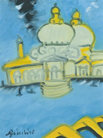 Remo Brindisi San Giorgio Olio su tela, cm. 40x30 Firmato in basso a sinistra. Sul verso: scritto di Autenticità dell'Artista; Timbro "Galleria d'Arte Pace, con n° 1735". Autentica dell'Artista su foto con Archivio n° 1735 "Galleria Pace", Milano.