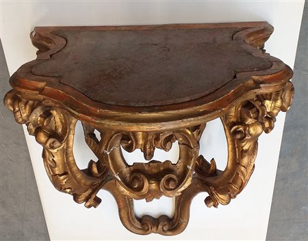 Antica console in legno intagliato e dorato di gusto rocaille, piano sagomato...