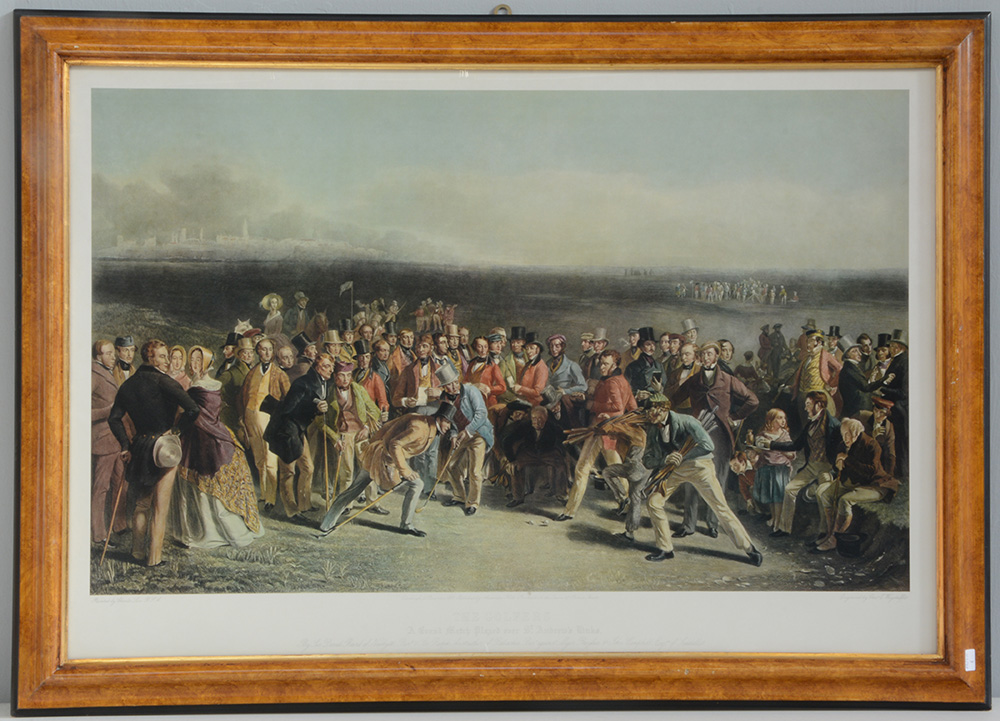 Incisione a colori raffigurante giocatori di golf (cm 64x92) In cornice