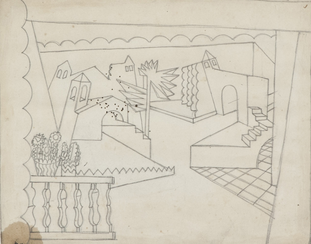 Fortunato Depero Studio per villaggio luminoso, 1918 Matita su carta, cm....