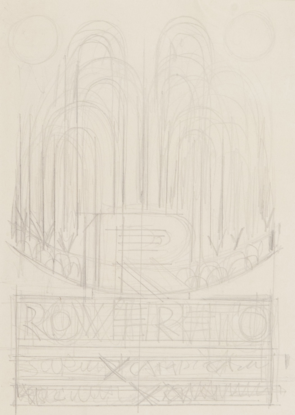 Fortunato Depero Cartello stradale turistico città di Rovereto, 1955 c.a. Matita su carta, cm. 26,2x20,6 Certificato di Archiviazione dell'Archivio unico per il Catalogo delle Opere futuriste di Fortunato Depero, con Archivio n° FD - 3791 - DIS.