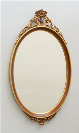 Specchio di forma ovale con cimase traforate a fiocchi e fiori (cm 100x60) (difetti)
