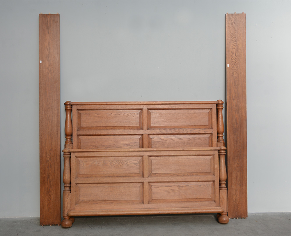 Letto a una piazza e mezzo in rovere con montanti sfaccettati (difetti)