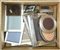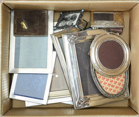 Cartone contenente numerose cornici in argento e metallo argentato di fatture...