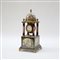 Orologio da tavolo in metallo smaltato con scene galanti, movimento elettrico (h cm 39) (difetti, meccanica originale non completa presente)