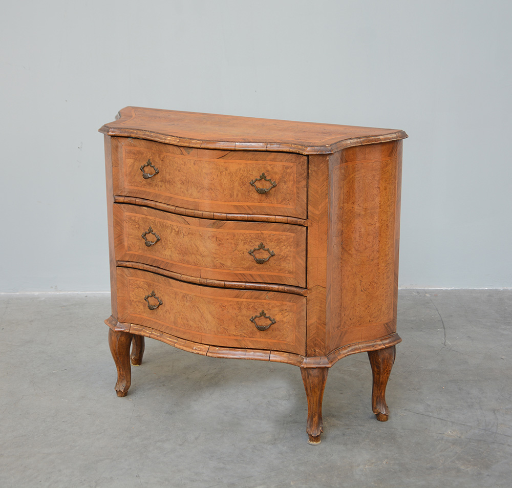 Mobiletto a tre cassetti filettato e radicato con fronte e fianchi mossi (cm 82x75x31) (difetti)