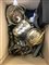 Lotto di un cartone contenente numerosi oggetti in metallo e metallo argentato per usi differenti (difetti)