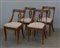 Gruppo di quattro sedie a gondola in noce con schienale decorato da cartella...
