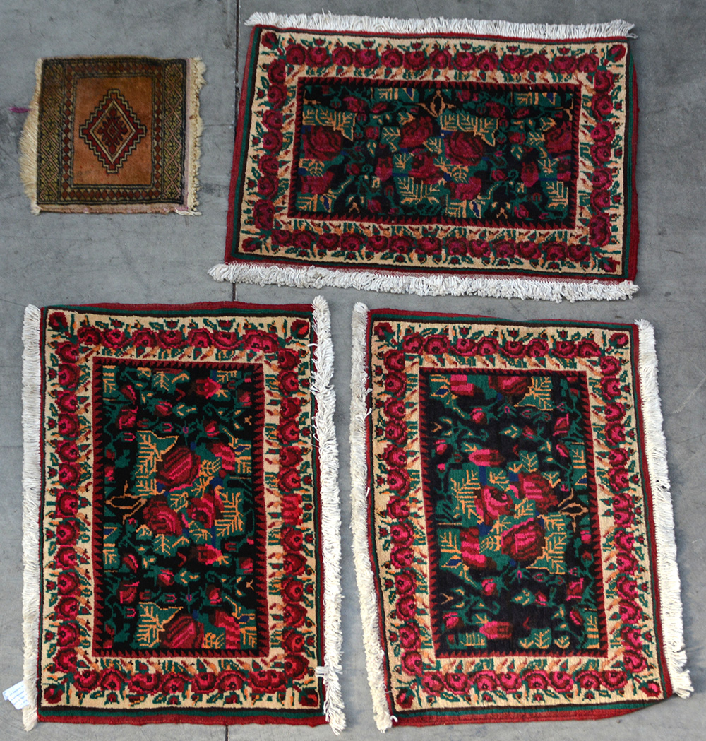Lotto di quattro tappeti orientali (il più grande cm 69x46) (difetti)