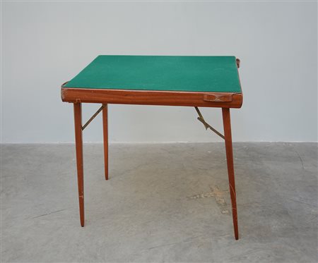 Tavolo da gioco con gambe richiudibili e piano con panno verde (83x75x83) (difetti)