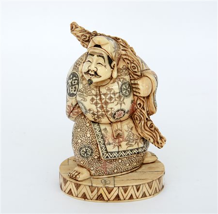 Divinità della fortuna in osso a tasselli Giappone sec. XX (h.20 cm.)(difetti)