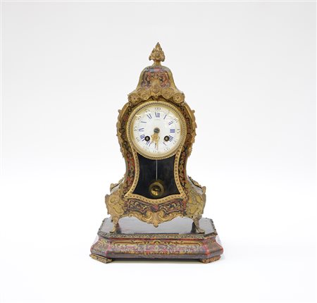 Pendola da tavolo in stile Luigi XVI completa di base, movimento con carica settimanalecon suoneria delle ore e delle mezze su campanello, quadrante in smalto bianco con numeri romani (h cm 34) (difetti)