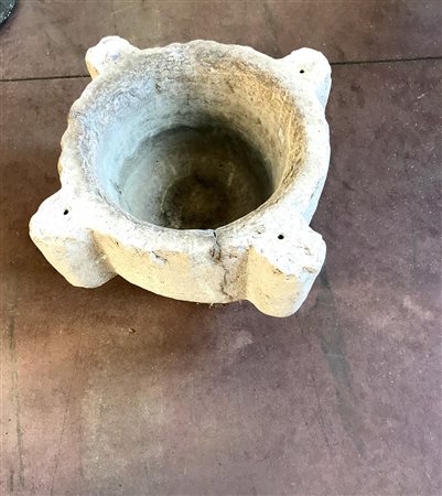 Mortaio in pietra a quattro anse (h cm 20, d cm 36) (difetti)