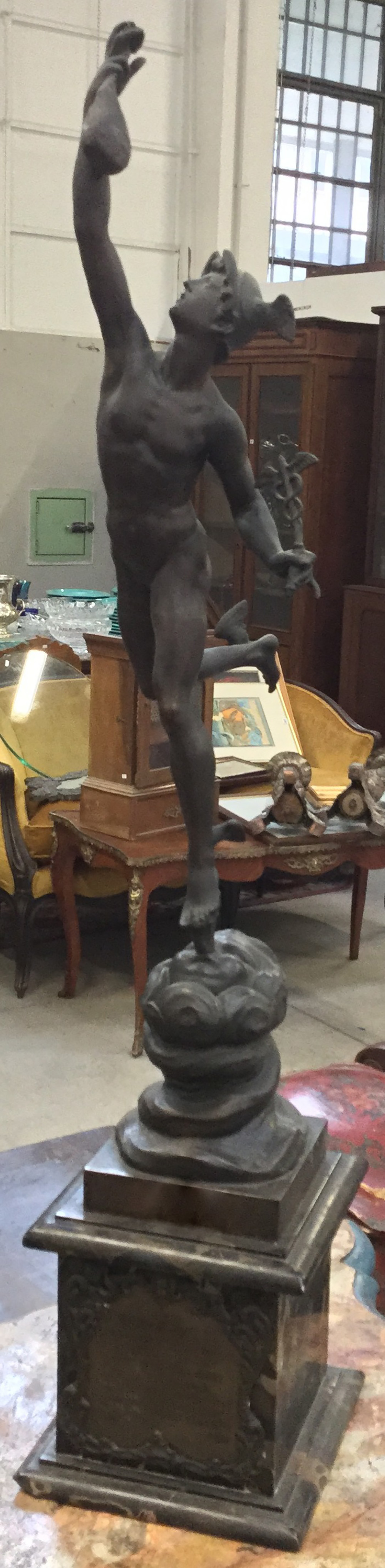 Ignoto, "Mercurio" scultura in bronzo (h cm 84) poggiante su base in marmo, con placca incisa con dedica (difetti)