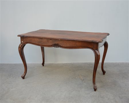 Tavolo rettangolare in noce a patina scura con piano e gambe mosse (cm...