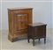 Lotto composto da un mobiletto e un comodino ad una anta, decori ed epoche diversi. (Difetti)