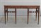 Consolle lastronata in radica di noce, gambe rastremate unite all'attacco da...