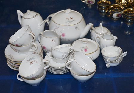 Manifatture diverse. Lotto composto da due parti di servizi da tè e caffè in porcellana decorata a fiori (difetti)