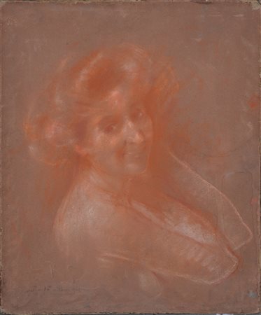 Firma indecifrata "Figura femminile" pastello su carta (cm 56x46) firmato e datato Parigi 1902 in basso a sinistra (difetti)