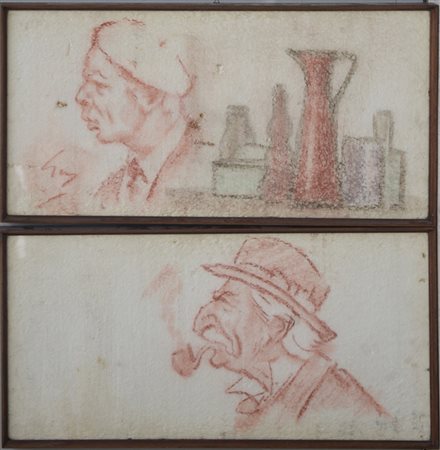 Firma indecifrata, lotto di due pastelli su polistirolo raffiguranti volti e...