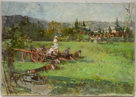 tracce di firma e data in basso a sinistra, firmato e iscritto al retro (lievi difetti)