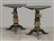 Coppia di consoline tripodi in legno ebanizzato e dorato, gamba centrale...