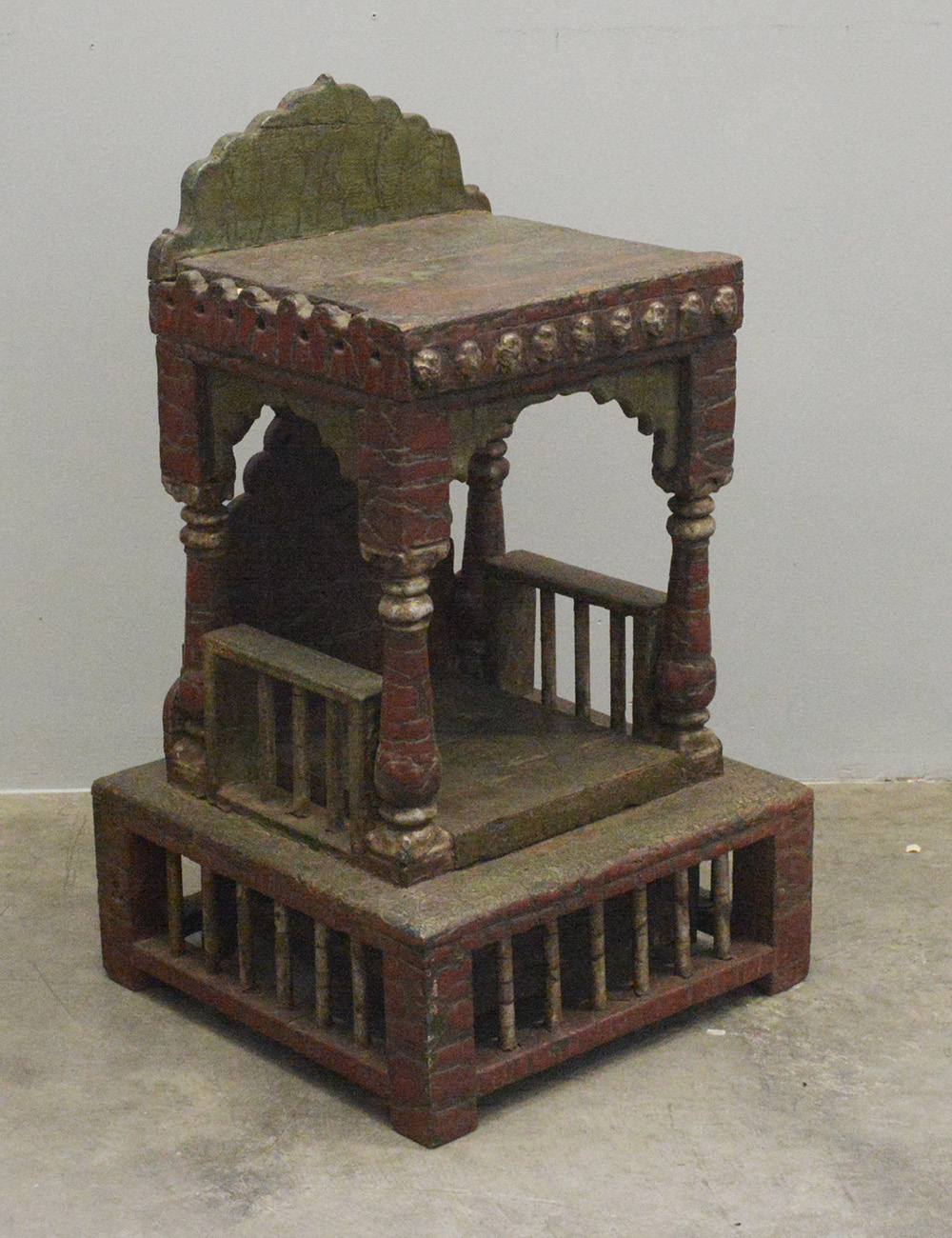 Manifattura indiana. Tempietto per altare in legno lavorato (cm 46x80x46) (difetti)