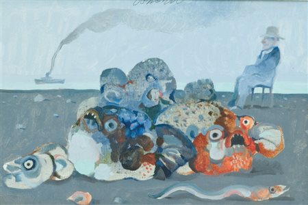 Antonio Possenti Una spiaggia Olio su cartone telato applicato su faesite,...