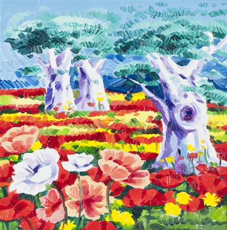 Athos Faccincani Gli ulivi raccontano, 2012 Olio su tela, cm. 30x30 Firmato in basso a destra. Sul verso: scritto di Autenticità dell'Artista. Autentica dell'Artista su foto.