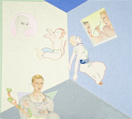 Luca Alinari Dal prisma, 2006 Acrilico, pomice e ricamo su tela applicata su tavola, cm. 95x105 Firmato in basso a destra. Bibliografia: Giovanni Faccenda "Luca Alinari, gli altri dentro di te", ediz. Masso delle Fate, pubblicato sul risvolto della copertina.