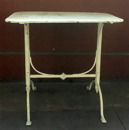Tavolino rettangolare da esterno in ferro laccato bianco con piano ad angoli smussati (cm 80x73x60) (difetti)