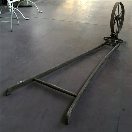 Struttura per carrello agricolo con ruota in ferro (difetti e mancanze)